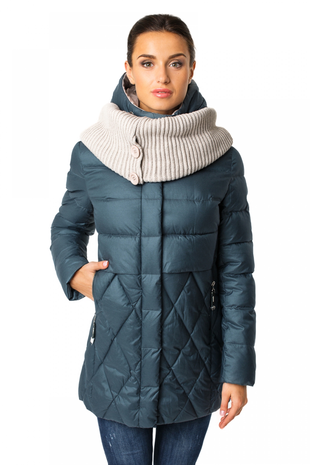 Без меха. С шарфом.